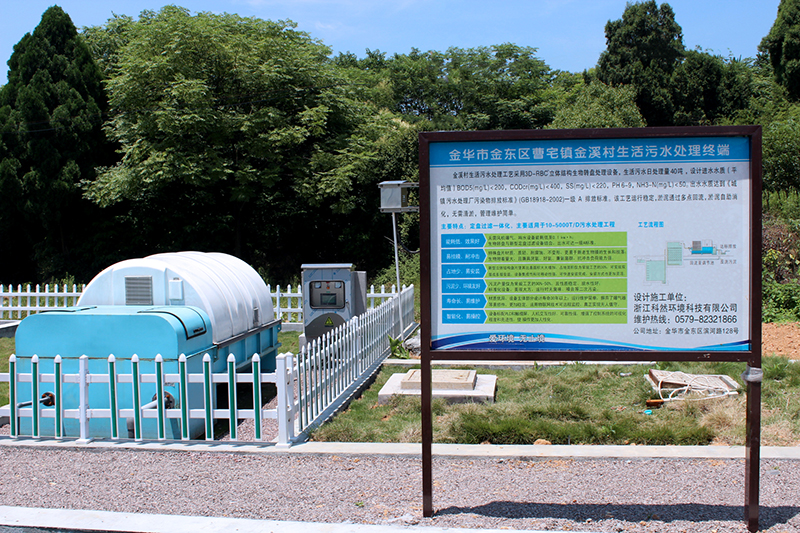 金华市曹宅镇金溪村生活污水处理工艺采用3D-RBC立体结构生物转盘处理设备,生活污水日处理量40吨,