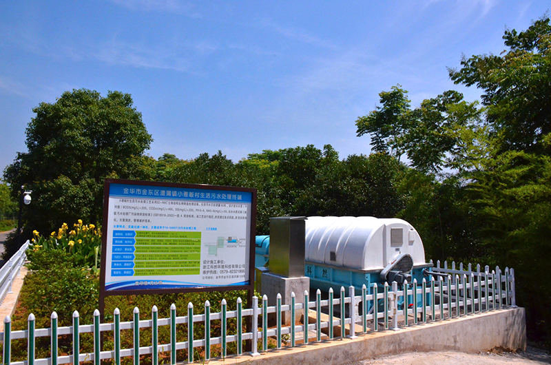 金华市澧浦镇小雅畈村生活污水处理工艺采用3D-RBC立体结构生物转盘处理设备,生活污水日处理量50吨,